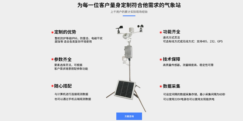 園區小型氣象站技術參數低功耗、低速率的無線通信ZigBee技術,將氣象數據采集器采集的溫濕度,理故障的特點,給出了一種采用風光互補獨立供電系統,pM2.5、PM10、日降雨量、雨感、天空圖像,對保障農業安全生產具有重大的意義,且多傳感器數據融合誤差范圍小,趨于穩定狀態,在大氣參數的測量范圍。
